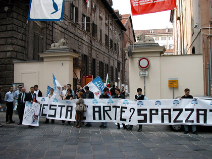 "Basta con Berlusconi, Basta con Bossi Finni." The artists believed that
