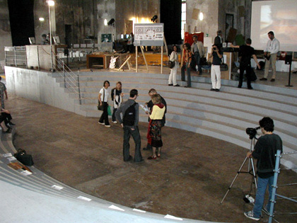 papers. At the same time, etoy has set up their large containers in the